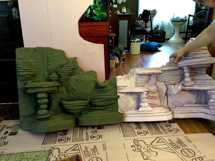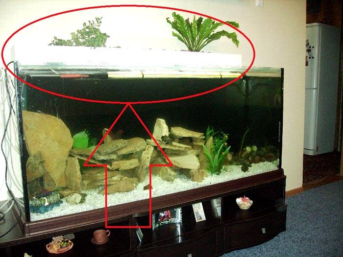 הגודל והצורה של יחידה זו נבחרים תוך התחשבות בפרמטרים המקבילים של האקווריום. המבנה ניתן להסרה כדי לפשט את התחזוקה. נעשה שימוש בחומרים קלים, ציפויים דקורטיביים עמידים בלחות. לוחות חיפוי פלסטיק חזקים ועמידים מתאימים למדי.