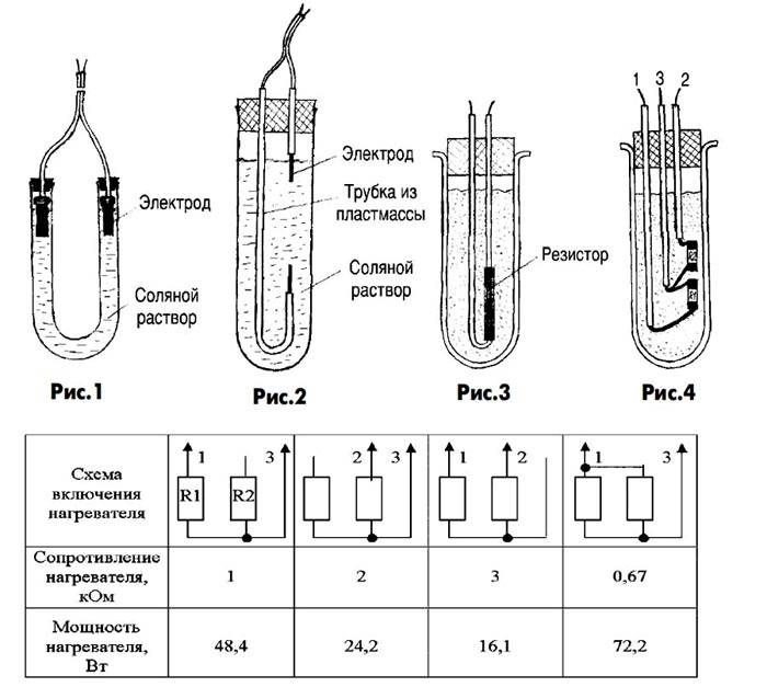 כאן, טמפרטורת הנוזל עולה עם זרם חשמלי. ניתן להשיג את ההתנגדות הרצויה על ידי שינוי ריכוז המלח.