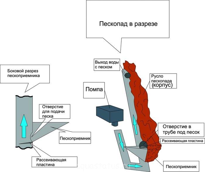 החלק הקשה ביותר במפל חול עשה זאת בעצמך הוא הערוץ. לא רק ההקלה היא החשובה, אלא גם זווית הנטייה. ניתן לבחור את הפרמטרים האופטימליים במהלך הבדיקה. היכולת לשנות את הלחץ באמצעות התאמת ביצועי המשאבה תועיל.