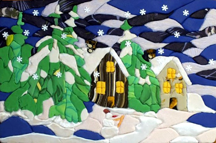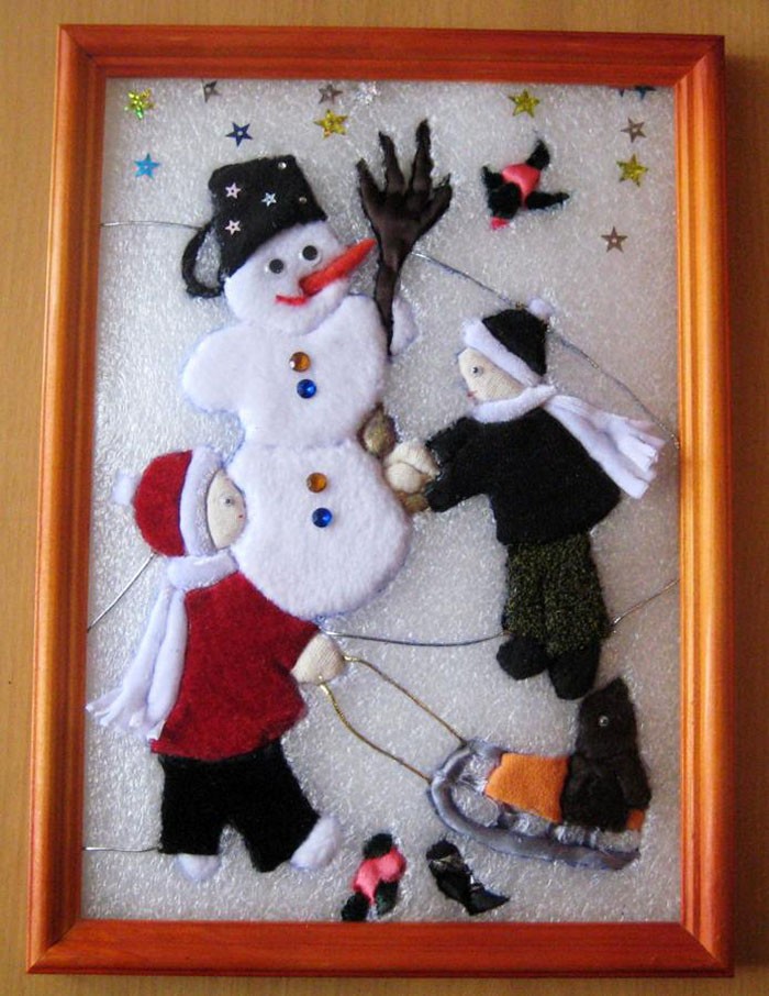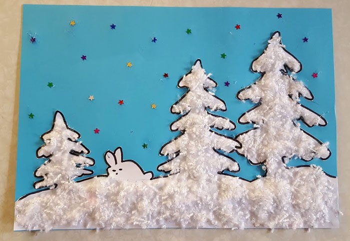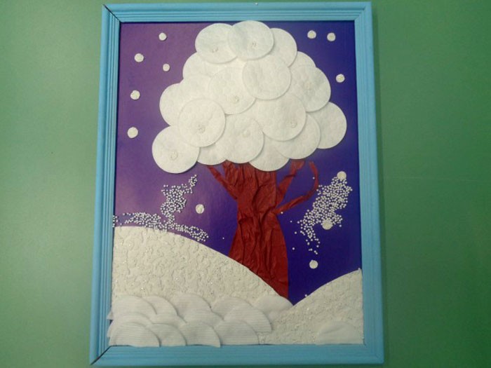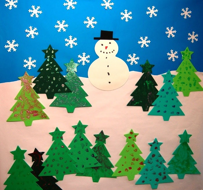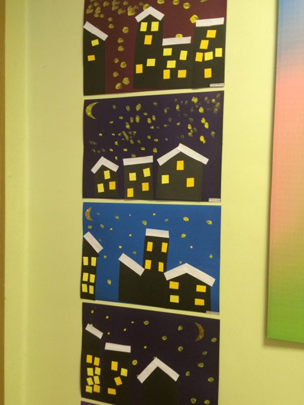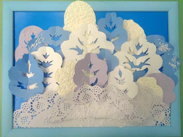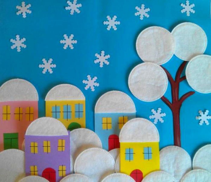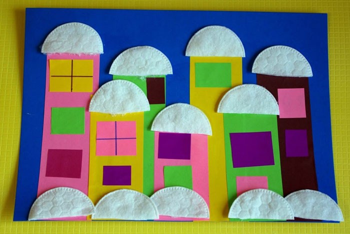 עבודה מעניינת ולא מורכבת היא יצירת עיר מושלגת. מהות הרעיון: על ידי הצבת דמויות מלבניות - גדולות כבתים וקטנות כחלונות - יוצרים רושם של עיירה שנרדמת מתחת לגשם שלג.