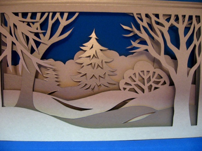 בעבודות כאלה משתמשים בפערים בין השכבות. כלומר, השכבה עם כל האלמנטים שלה נחתכת בבת אחת. כל שכבה מרווחת מהקודמת במרחק כלשהו. זה יפה במיוחד כאשר רצועת LED מועברת ביניהם.