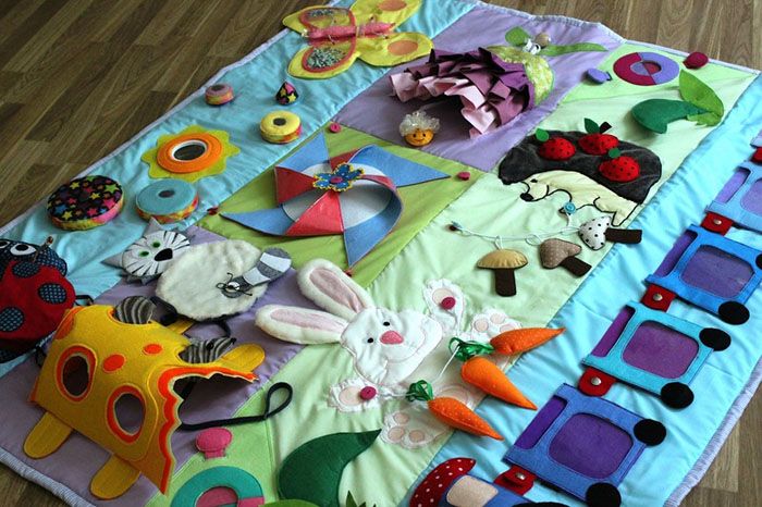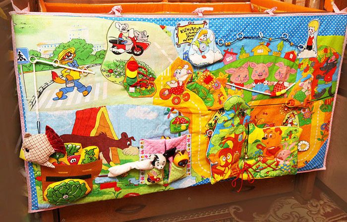 כל הכיסים עובדים, עם אלמנטים סמרטוטים אתה יכול לבצע מניפולציות שונות. התנאי העיקרי הוא בחירת בדים טבעיים ובטוחים בלבד.עבור לוח עסקי טקסטיל, אתה צריך בסיס בד צפוף, מכונת תפירה, צעצועי טקסטיל שונים, מחטים, כפתורים, שרוכים.