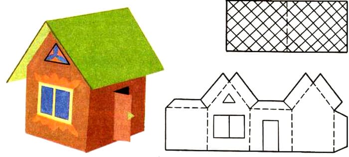 דגמי חתכים פשוטים יותר נוחים למשחק עם בובות קטנות. ניתן להדביק כל חדר עם פיסות נייר או טפטים שונים, כך שתקבלו בית מן המניין