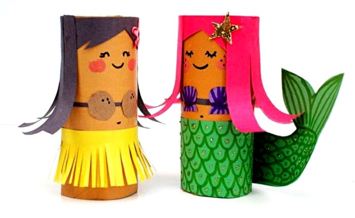 כדי להקל על תהליך יצירת בתולות הים, מציעים לילד לקחת לא דף קרטון, אלא שרוול נייר טואלט: זהו חומר מוכן המעוטר בשיטת היישום.