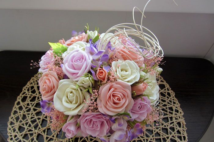 אם יש לך שאריות של קצף, אל תמהר להיפרד מהם. בסדנאות שלנו ראית פרחים עם עלי כותרת בגדלים שונים, כולל קטנים מאוד. אפילו פירות יער ניתן להכין משאריות קטנטנות - בשביל זה אתה צריך לעטוף את החרוזים בצורה. ניצנים מיניאטוריים יקשטו גם את הקומפוזיציות שלכם. ראה כיצד זה עשוי להראות מדהים:
