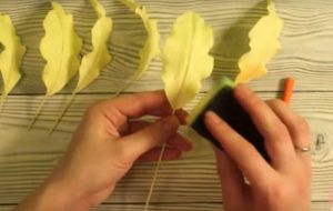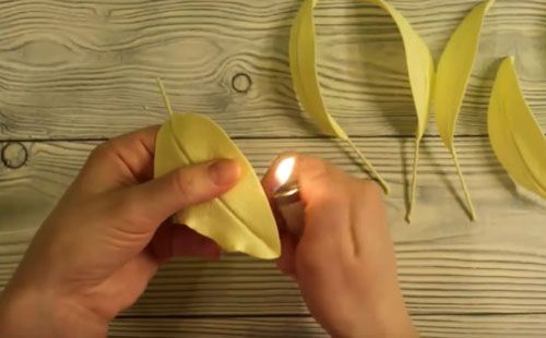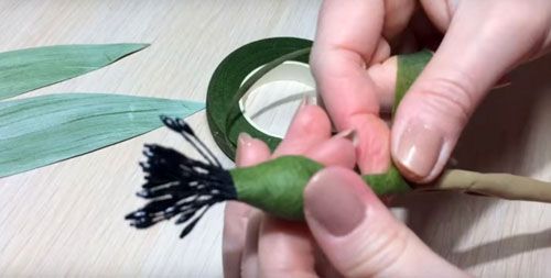 השתמש ב- foamiran משי כדי להכין צבעונים - זה עובד הכי טוב עבור הפרחים העדינים האלה.