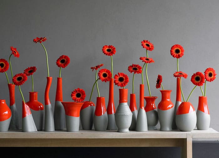 אגרטלים בסלון יכולים להיות מעוטרים באנסמבל מסוגנן יחיד תוך שימוש בצבע באותו צבע