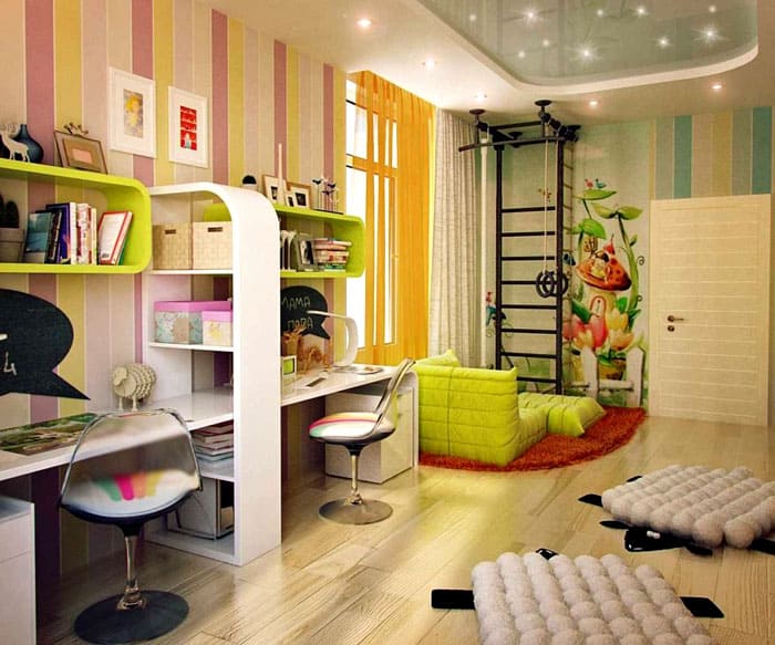 חומר וקישוט קירות, רצפה ותקרה של חדר ילדים לשני ילדים