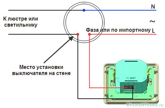 - באמצעות המעגל, חוט עם פאזה מחובר למסוף "L", והשני למחבר "N";