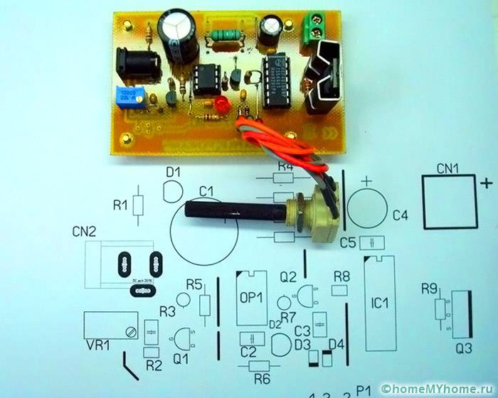 חלקים אלקטרוניים מונחים על גבי לוח מודפס ומחוברים באמצעות הלחמה. מעגל דימר משמש להתקנה. לאחר ההרכבה יסופק זרם לקבל, ומשם הוא יעבור למנורה. הבדיקה מתבצעת לאחר עבודות ההתקנה. המכשיר מחובר לשקע ומחובר לרשת. יש לבודד היטב את כל החיבורים. בעת סיבוב מנגנון הבקרה, המנורה תבריק זוהר, וכאשר היא מסתובבת בכיוון ההפוך, פחות.