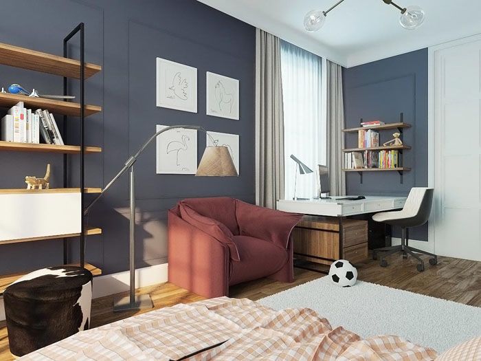 בני נוער נוטים יותר לבחור צבעי חדר רציניים למבוגרים עם מבטאים צבעוניים בהירים. הגיל והסגנון הרצוי של החדר ממלאים תפקיד בבחירה.
