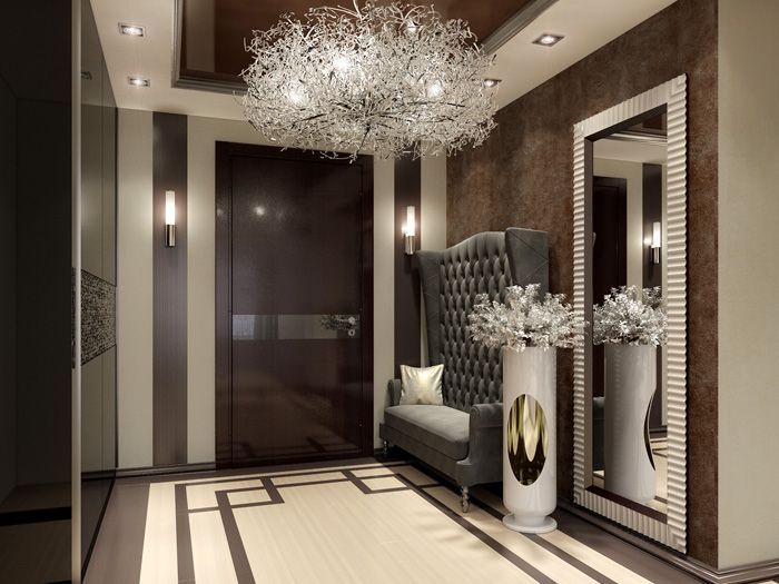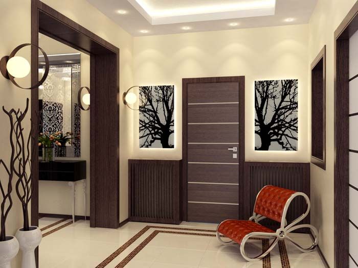 ברוב המקרים המסדרון הוא חדר ללא חלונות, מסיבה זו השאלה נכונה סידור מנורות חשוב מאוד. התאורה בלובי צריכה להיות בהירה מספיק כדי למצוא דברים בארון ולהתלבש. אבל אתה לא צריך להיסחף מדי: תאורה חזקה מדי תפגע בעיניך.