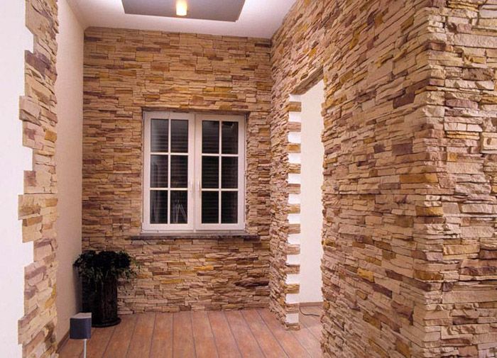 - אבן. בבית פרטי, ראוי למדי להשתמש באבן דקורטיבית בעיצוב פנים. באולם הגדול, בעזרת קישוט כזה, קל לאזור את החלל ולהדגיש את הכניסות המקושתות.