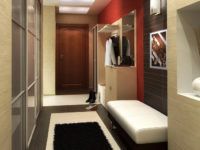 בתכנון של מסדרון ארוך אינך יכול להשתמש בטכניקה של חלוקת קירות אופקית. האווירה בחדר כזה צריכה להיות מינימלית. ככל שהארון מקטין את רוחב המסדרון, כך טוב יותר.