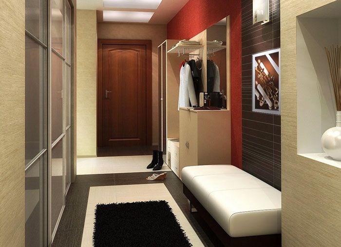 עדיף לחלק מסדרון צר וארוך לאזורים נפרדים. אחד מהם הוא המקום בו הם מחליפים בגדים, השני הוא המקום בו מאוחסנים הדברים, השלישי, הפחות פונקציונאלי, יכול להפוך למקום להצבת תמונות או לסרגל אופקי.