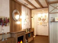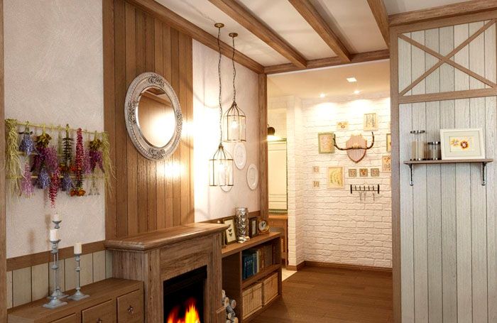 | השימוש בחומרים טבעיים לקישוט: אבן, עץ, בד. ניתן להתקין קורות דקורטיביות על התקרה. הרצפות מכוסות בלוחות טבעיים עם מרקם אקספרסיבי. | ריהוט מחוספס בעבודת יד העשוי מעץ טבעי אורגני משתלב בחלל פנים כזה. שידות גדולות, ספסלים מחוספסים ומתלים עתיקים נראים טוב. | רצים ארוגים בעבודת יד, ציורים כפריים, סלי נצרים ומוצרי ברזל יצוק. |