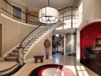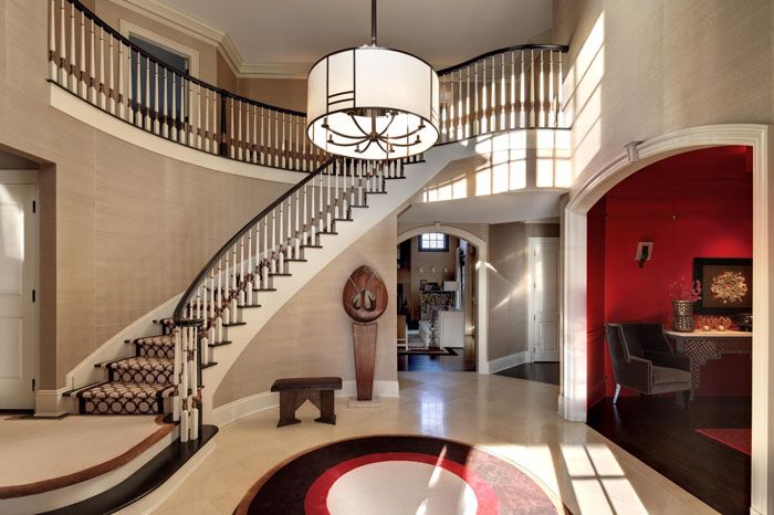 פריטי עיצוב משמשים למילוי החלל הפנוי: פסלים, אגרטלים, מעמדי מטריה ואלמנטים אחרים עליהם דיברנו לעיל. מנורות גדולות מתאימות בחדר כזה, תִקרָה, קיר ורצפה.