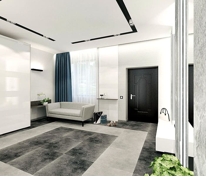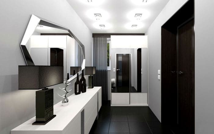 המסדרון בדרך כלל גדול. לעתים קרובות, זהו הרחבה של החדר הראשי בקומת הקרקע. הרהיטים הם בהירים או כהים, אבל צריך להיות מעט מאוד תפאורה.