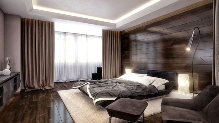 חדר השינה כמקום שינה, מנוחה והרפיה מוסרית בהיי-טק טהור הוא די אישי, אם כן, אם לבעל יש רצון כזה, מותרת סטייה מסוימת לקנונים. מוגזם אינו מתקבל בברכה, אך תאורה תעשה את החדר נעים יותר אם הוא מגיע מפמוטים או מנורות רצפה.