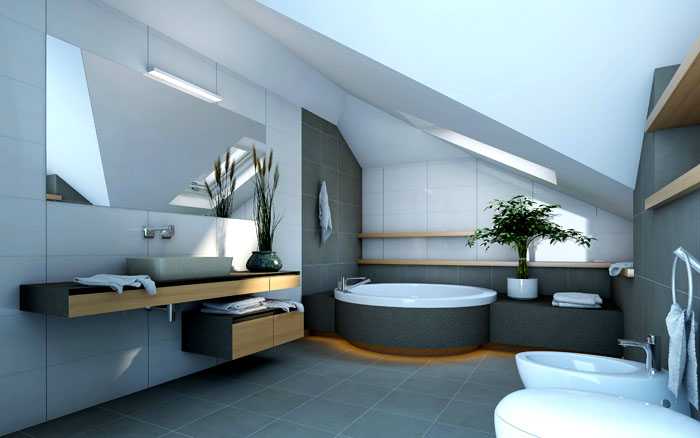 באמבטיות כאלה, האור צריך לשפוך מכל מקום, למלא חלל לא מבוטל. בתוכו פנים עץ מסורתי, מעוצב בהתאם לצרכי הסגנון.