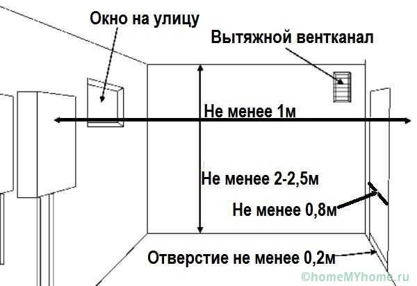 - יותר מ- 30 ס"מ מציר הארובה למשטח הקיר;