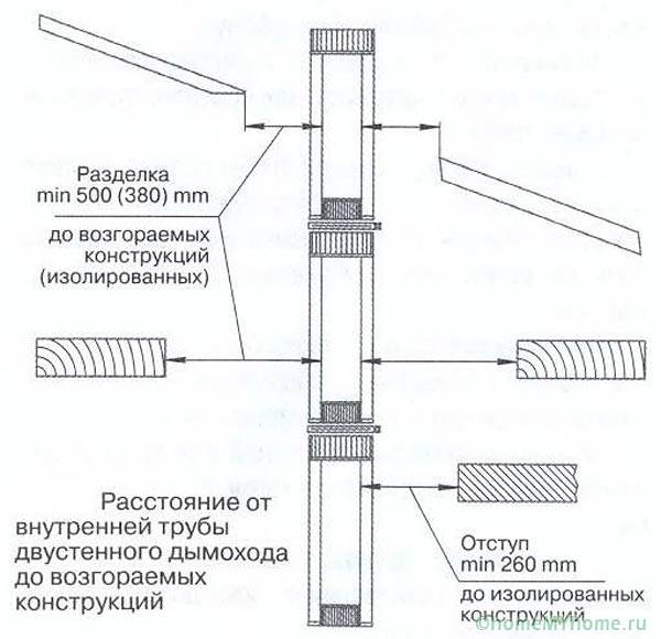 המרחקים מהמשטחים החיצוניים של מבנים לאלמנטים מעץ של מבנים נושאים (מחרטות, קורות, קורות, סורגים) חייבים להיות גדולים מהמידות המצוינות, תלוי בחומר הארובה: