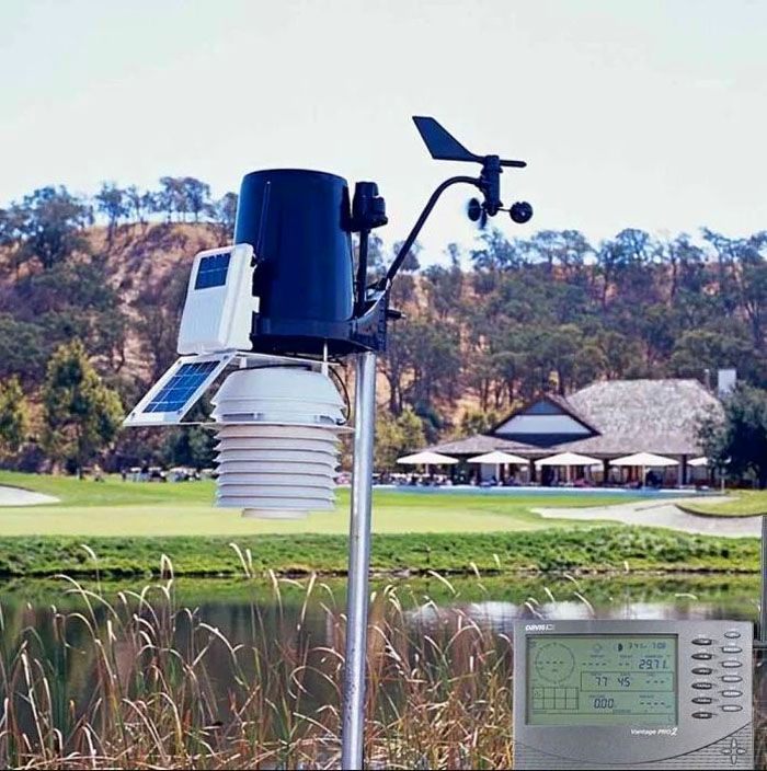 בדוגמה זו, חיישני טמפרטורה, לחות, לחץ אטמוספרי, כיוון רוח ומהירות מותקנים על מוט מתכת חסון. אותות מהם נשלחים ליחידה הפנימית דרך ערוצי תקשורת אלחוטיים. סוללה סולארית מותקנת לאספקת חשמל אוטונומית של הרכיבים החיצוניים של הערכה.
