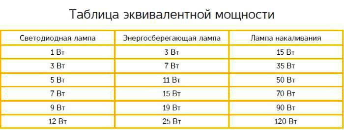 היתרון של מוצרי פלואורסצנט הוא בעמעום. זה משתמש במתח גבוה. בטבלת החשמל תוכלו לראות את ההתאמה של מכשירים לחיסכון באנרגיה לאפשרויות חלופיות. אתה יכול לקבוע כמה המוצר צורך חשמל באמצעות מד וואט.