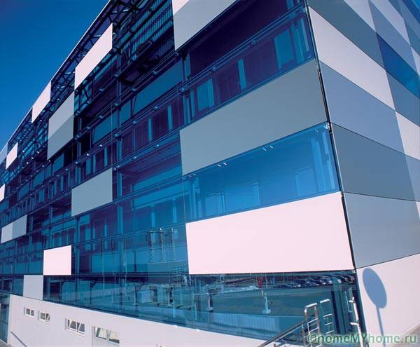 לוחות זכוכית משמשים בדרך כלל לקישוט חלקים בודדים של הקירות החיצוניים.