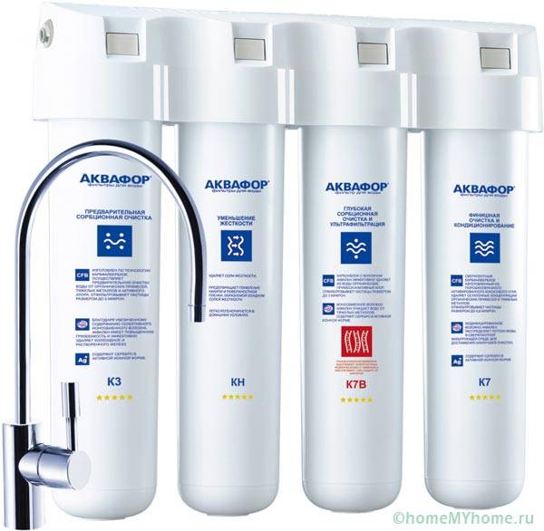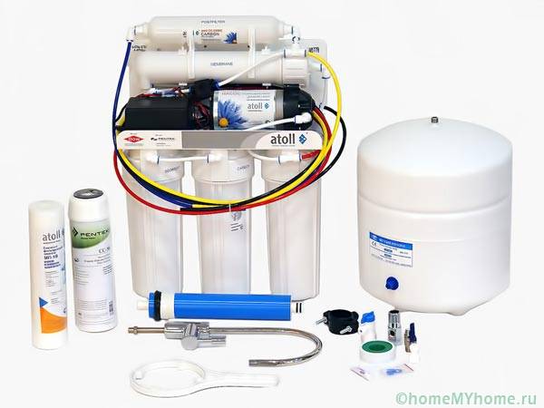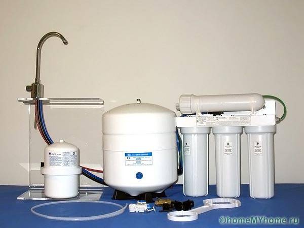 מידע מועיל! בדירות עם מאפייני לחץ נמוך, הפרעות באספקת המים, תצטרך בנוסף להרכיב משאבה. החבילה עשויה לכלול גם מנורת חיטוי UV. עבור מסנני אוסמוזה הפוכה, נדרש מצבר הידראולי (מיכל קרום) אשר ידרוש מקום נוסף.