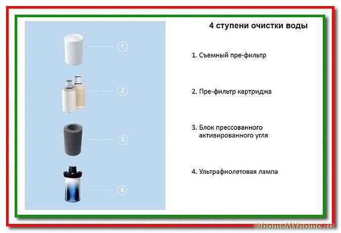 - שלבי III - V - קרום או מחסנית להחלפת יונים מספקים ניקוי עדין, פחם פעיל אוסף את הזיהומים הנותרים.