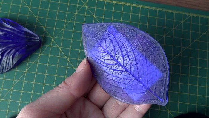 העבודה עם חומר רך זה פשוטה ונעימה מאוד. החלקים שאתה רוצה פשוט נחתכים מהתבנית ואז נמתחים מעט לכל כיוון שתרצה. עלי כותרת ועלים מוגמרים קבועים בהרכב בעזרת אקדח דבק.