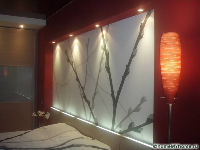 - ניתן להציב רצועות LED סביב כל ההיקף. במקרה זה, נישה מיוחדת מיוצרת עבור אלמנטים התאורה כך שמקור האור לא יהיה בהיר מדי.