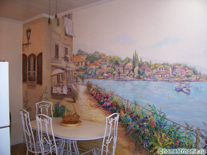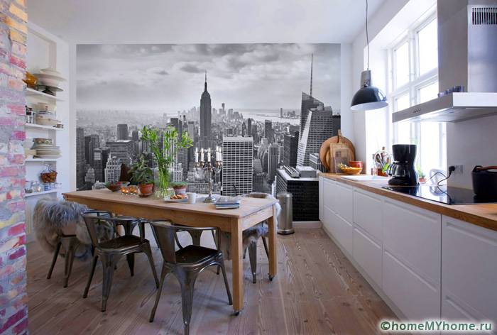 בדירות, המטבח הוא לרוב החדר הקטן ביותר. ציורי קיר יעזרו בהגדלה חזותית של חלל קטן. בעת בחירת בדים, עליכם לקחת בחשבון את חומר הייצור, כמו גם את האיכות. חיפוי הקיר למטבח חייב להיות עמיד בפני לחות ותנודות טמפרטורה.
