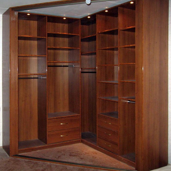 אם אתה רוצה להשיג מרווח מקסימלי תוך כדי קומפקטיות יחסית, כדאי להשתמש בשני קירות, וזה אופטימלי למשפחה של מספר אנשים. סט רכיבים פינתיים יספק ארגונומיה מספקת של המבנה המותקן באזור מוגבל. עם זאת, כדאי לקחת בחשבון ששימוש בחדר הלבשה כזה כחדר התאמה לא יעבוד.