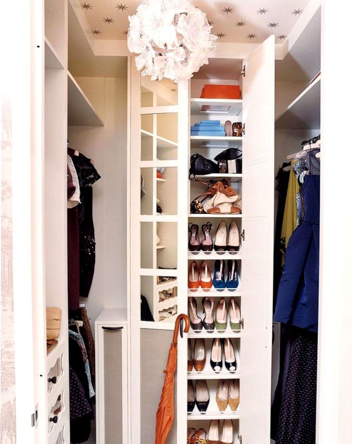 - תא תחתון לנעליים, אביזרים קטנים (מטריות, תיקים) ומכנסיים. גובהו של אזור זה לא יעלה על 70-80 ס"מ. יש להצטייד במדפי הזזה בעלי נטייה מיוחדת לנעליים.גובהם יהיה תלוי ביעד. עבור נעלי קיץ, הגובה צריך להיות כ- 30 ס"מ, עבור נעלי חורף - 40-45 ס"מ;