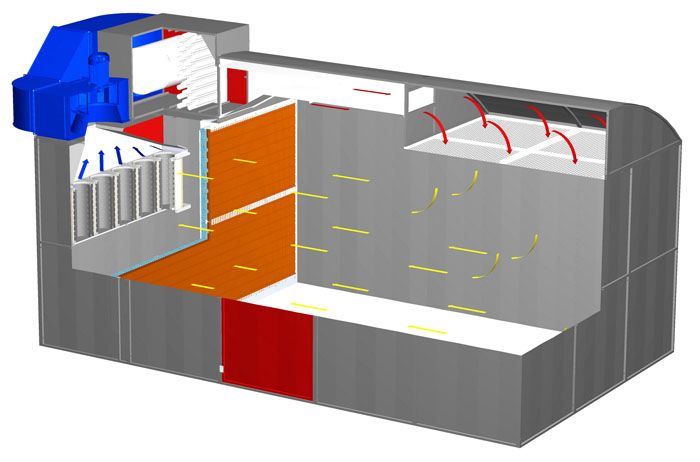 על מנת להבטיח שחדר אוויר צח מספיק ייכנס לחדר, גודל פתחי הכניסה נקבע על בסיס מהירות התנועה של המוני האוויר ומידות החדר. בהתאם למסמכים הרגולטוריים, יש לספק חילופי אוויר יחידים.