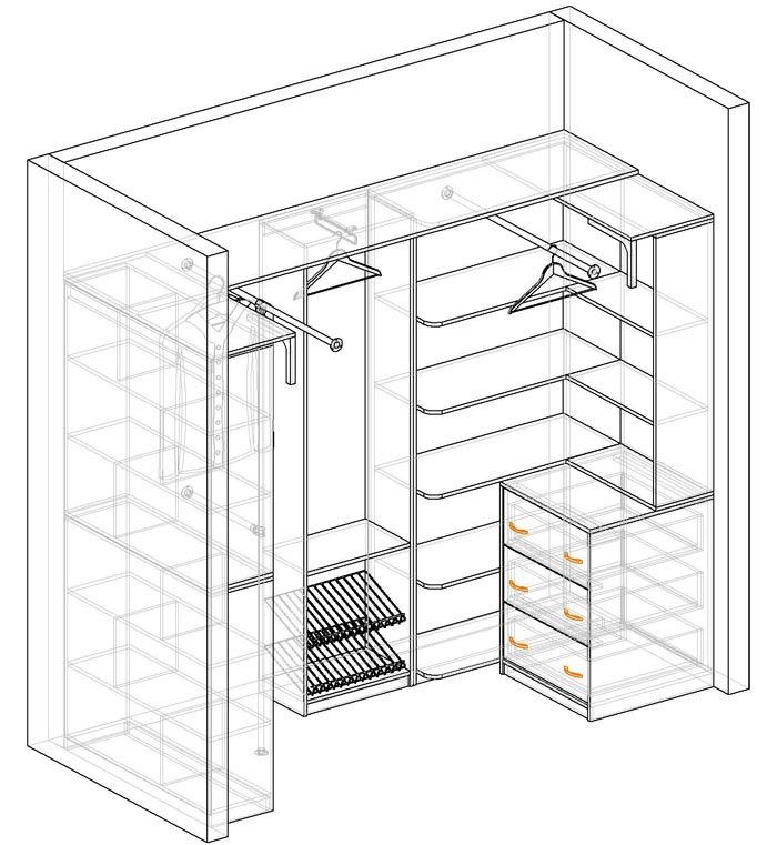 פרויקטים עיצוביים מוכנים לחדרי הלבשה עשויים לא תמיד להשתלב בחלל המוקצב. במקרה זה, ניתן להרכיב את המערכת הנדרשת במו ידיך, לאחר שהכנת בעבר את הכלים הדרושים, חומרים, וכן פיתח תרשים ושרטוטים.