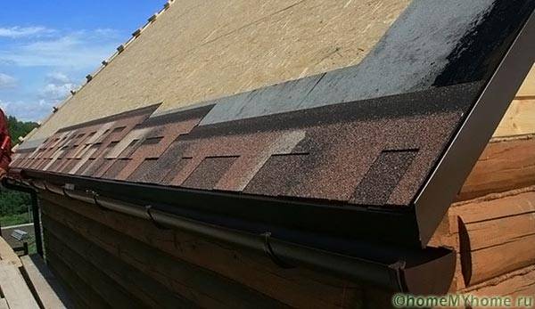 לנוחות העבודה בגובה, לרעפים יש פורמט קטן. הם מוערמים מהמתלה אל הרכס עם מדף, כך שכל שורה עליונה חופפת את זו התחתונה. מקצות, צמתים של מעברים ארובותתחילה מעובדים צינורות האוורור. ואז הכרכוב, רצועות הגבעול קבועים, סוגרי המרזבים מחוברים. לאחר מכן, נותר למלא את משטחי המדרונות ברעפים, לחתוך אותם ברוחב, באורך לפי הצורך.