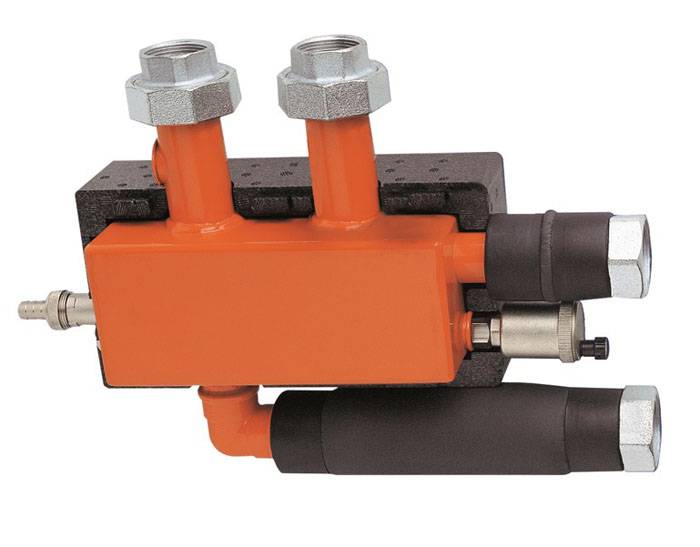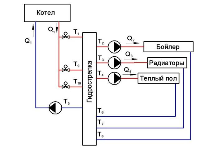 התקנת חץ הידראולי בתרשים חיבור עם מספר מחלפי חימום מתבצעת באמצעות מתג מיוחד. הסעפת מורכבת משני חלקים נפרדים עם צינורות ענף. מחוברים אליהם שסתומי כיבוי, מדידה ומכשירים אחרים.