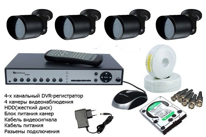 ההחלטה הנכונה היא לקנות סט מוכן של מערכות מעקב וידאו של Falkon Eye. סט זה מכיל 4 מצלמות ברזולוציית 480 TVL ותאורת אינפרא אדום. גם בחבילה יש מצב לילה ומטריקס CCD. אין משדר במערכת, ולכן הנתונים נרשמים בדיסק הקשיח. יש גם מנוע סיבובי המאפשר לצפות מרחוק בשטח.