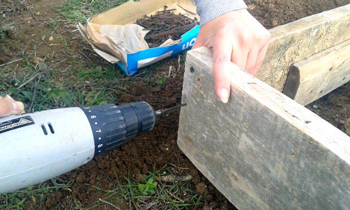 למבנה מלבני יש צורך לחבר 4 לוחות ולצרף אליהם מוטות תמיכה, שאמורים להיות ארוכים 20-30 ס"מ מהצדדים העתידיים. צריך לחדד אותם מעט עם גרזן מהצד החופשי (כדי לפשט את הכניסה לקרקע).