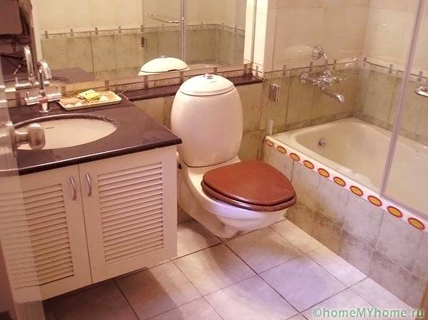 פנים חדר אמבטיה בשילוב עם שירותים: אנו מבצעים תיקונים בעצמנו