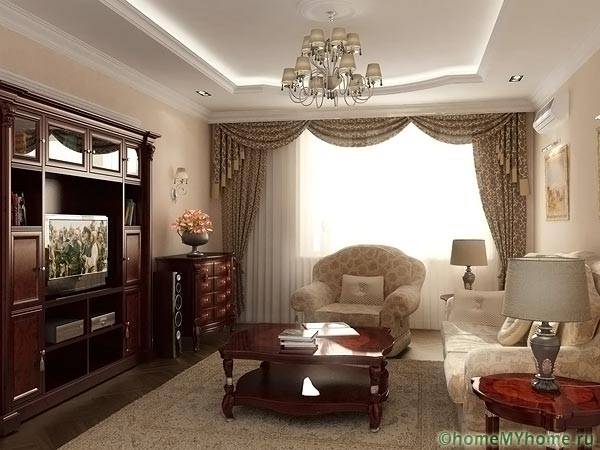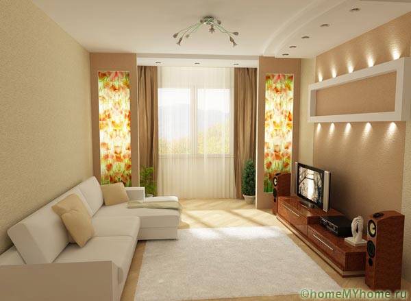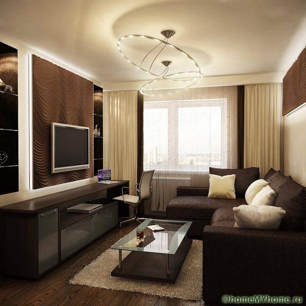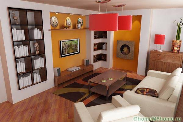 גודל האולמות בדירות מודרניות אינו מאפשר שימוש ב הרבה רהיטים ופריטי תפאורה. סט סטנדרטי של ספה, כורסה, ארון בגדים ושולחן, שנבחר בהתאמה קפדנית לרעיון המעצב, יוצר ומשלים את הפנים.