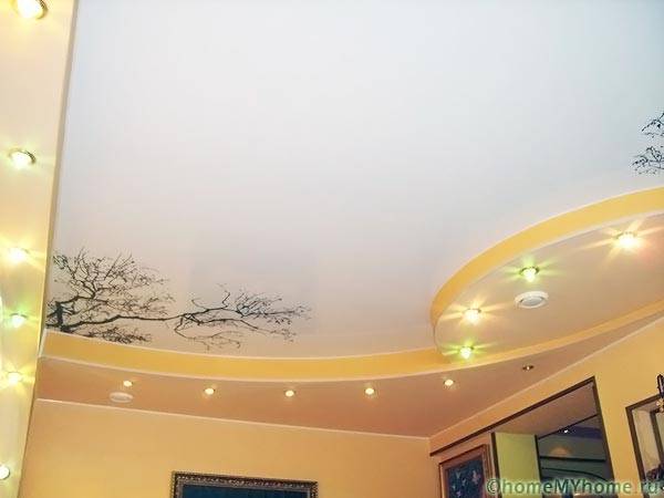 מידע מועיל! תקרות מתיחה תהיה אפשרות תקציבית יותר. כדי להעניק להם מבריק ומקוריות מיוחדים, תוכלו להשתמש בהדפסת תמונות ובתאורת לד יפה.