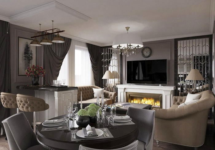 העיצוב הניאו-קלאסי של הדירה אפיין במלואו את בעליה, מה שמעיד על כדאיותם. סגנון זה מסוגל להשתנות באופן קבוע, אין בו נגיעות ומגמות מסוימות.