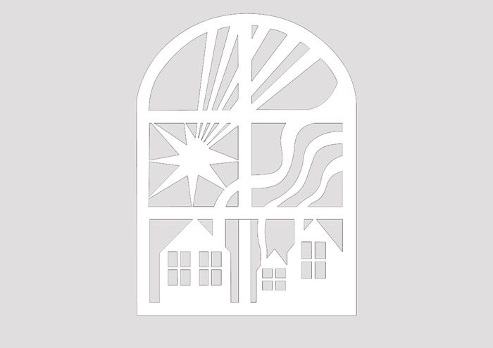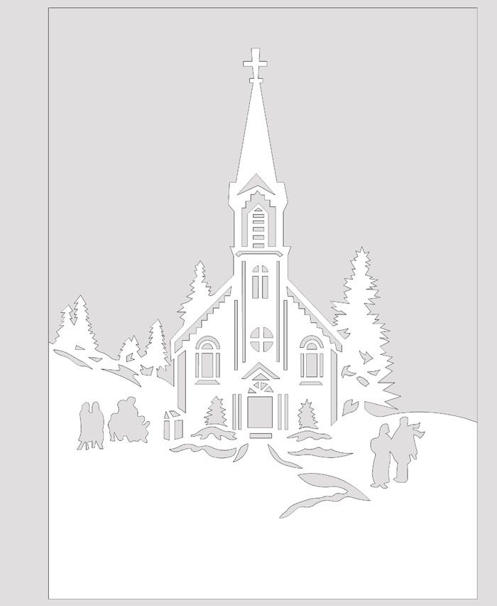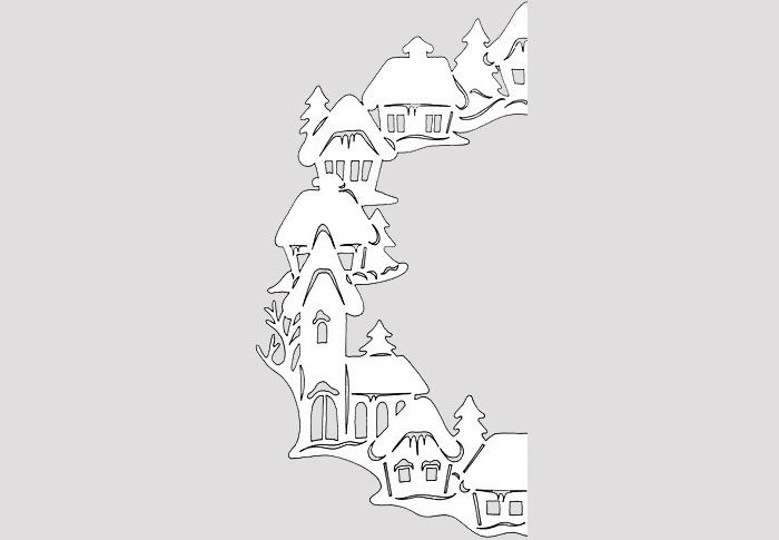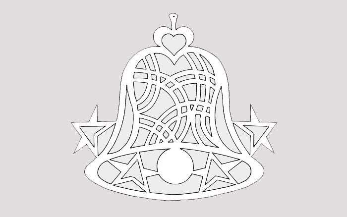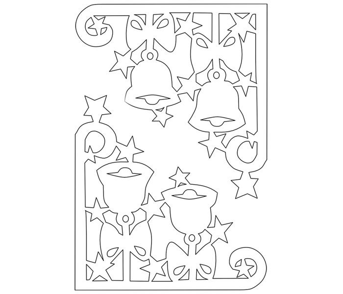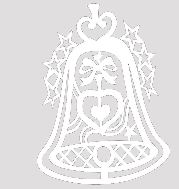 אתה יכול להכין באופן עצמאי תבנית עבור vytynanka לשנה החדשה בכל צורה וגודל, בין אם זה בית, עץ חג המולד או שעון עם פעמונים