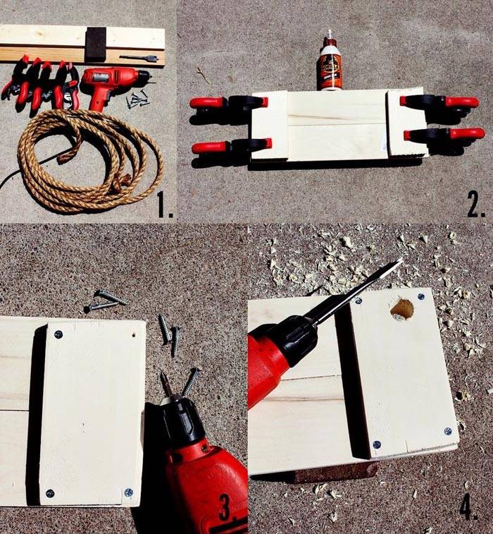 הלוח שנחתך לגודל הנדרש מנוקה בזהירות, מסירים את הקצוות והקצוות מעוגלים. זה קבוע על החבלים במו ידיך, תוך בחירת ענף עץ מתאים. התהליך כולו יימשך לא יותר משעה תוך שימוש בחומרי גרוטאות, כלי נגרות זולים.