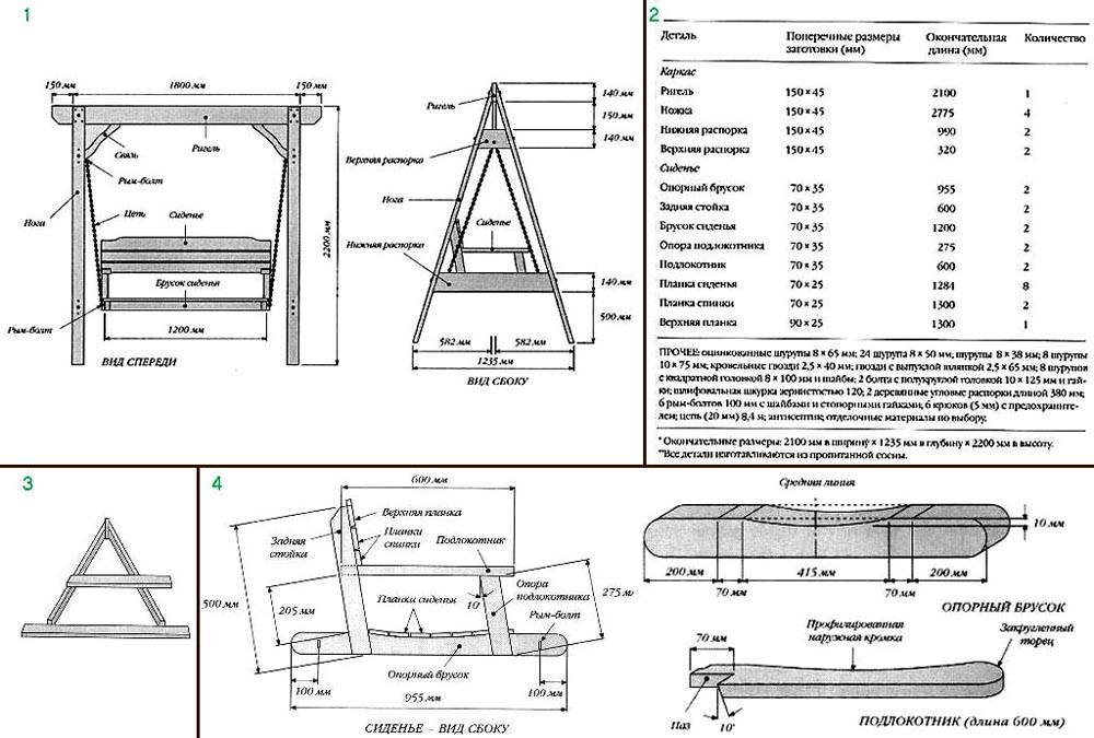 התמונות שלעיל עם הערות מסבירות את הצורך בהכנה רצינית לפרויקט זה. הנדנדה הכפולה צריכה להיות מתוכננת למשקל מוצק. קונסטרוקציות בחוץ, מבוגרים, יוצרות עם מרווח בטיחות מספיק. משטחים וחומרים דקורטיביים ומגנים נבחרים תוך התחשבות בהשפעות טבעיות. עליך ליצור תרשים עם מידות, רשימת אביזרים. יהיה שימושי ללמוד את ביקורות הבעלים אם תתקבל החלטה לקנות מוצר מוגמר בחנות.