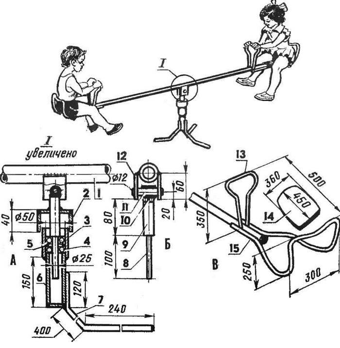 - אנו מייצרים את רגלי התמיכה מצינור (33.5 x 3 מ"מ). מסגרת (15) וידית (13) עשויה מוט מתכת (12 מ"מ).